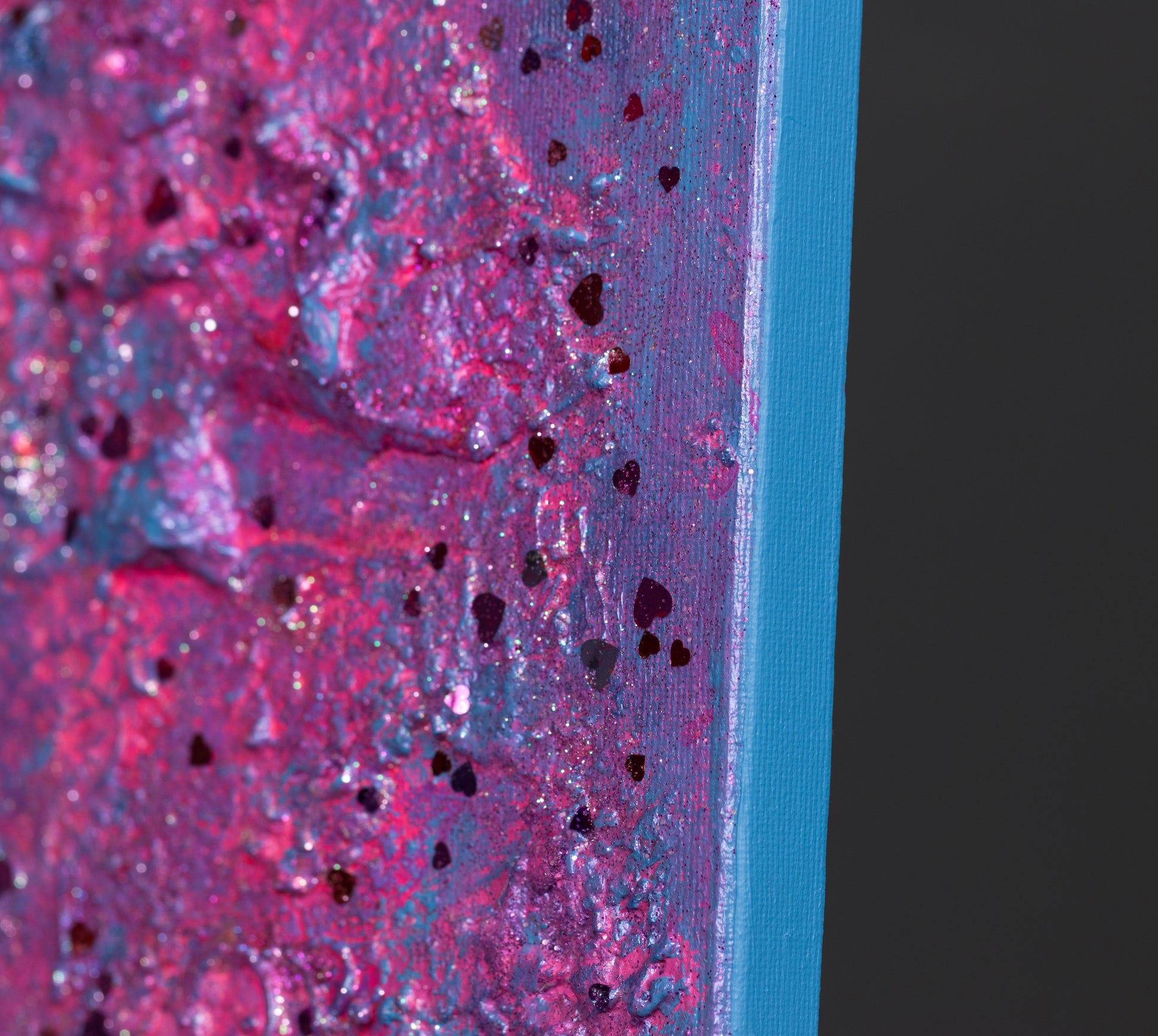 This is the unique acrylic and objects painting on canvas. The style is defined by sculptural use of paint. It is 3-D, built-up mixture of many layers of thick gesso, paint, sand and other materials.