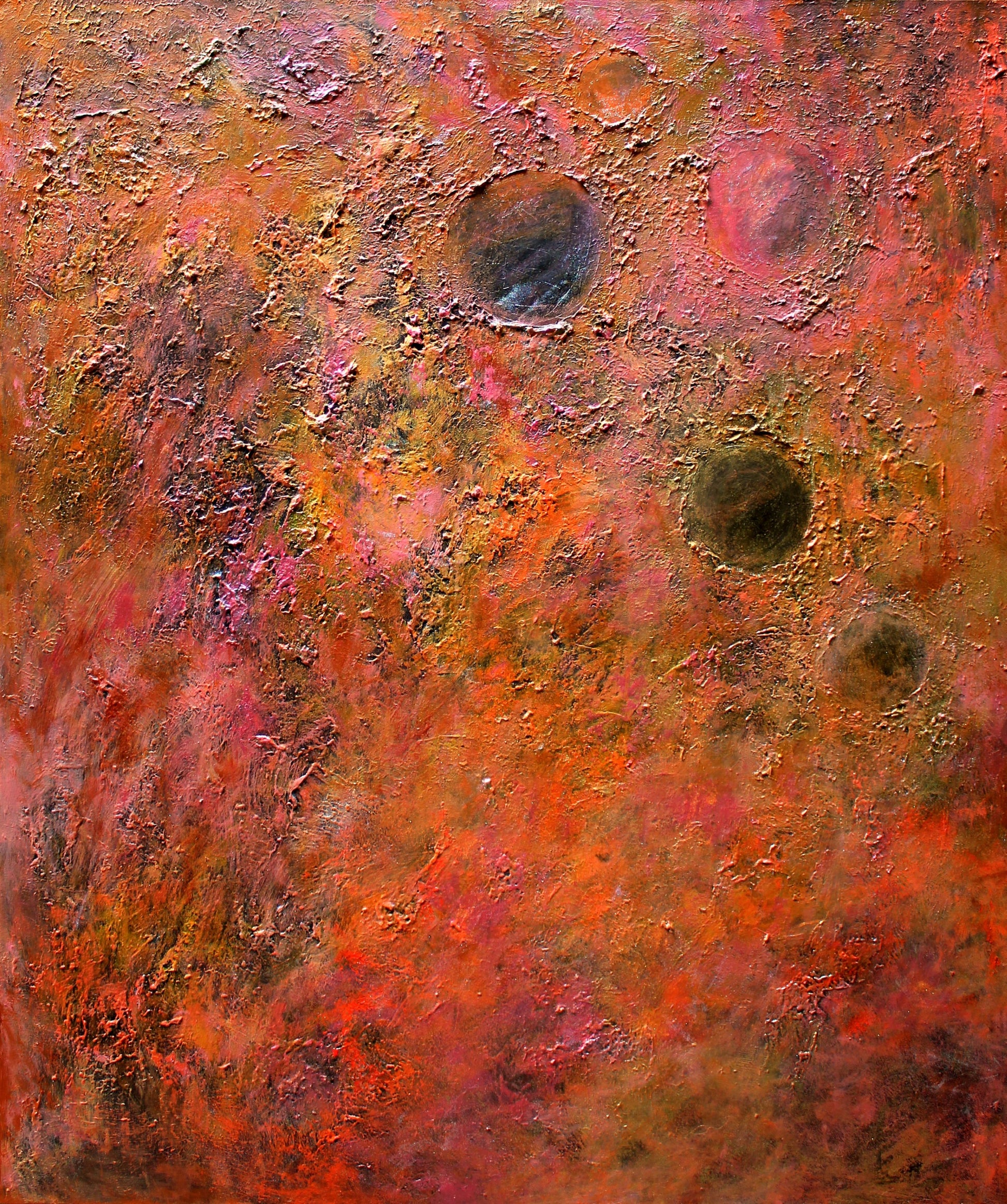 This is abstract painting on canvas. I'm currently creating a new series of paintings about solar system. I'm inspired by structure of planets. This one was inspired by surface of planet Mars. I very much enjoyed painting process, because it gave me a lot of room to experiment. I also discovered some new features of materials that I used. It is mixed-media painting in heavy impasto with acrylic paints, gesso and brocade. An artwork is signed on the back. Original title is written on the back. A signed Certificate Of Authenticity will be included with the artwork.